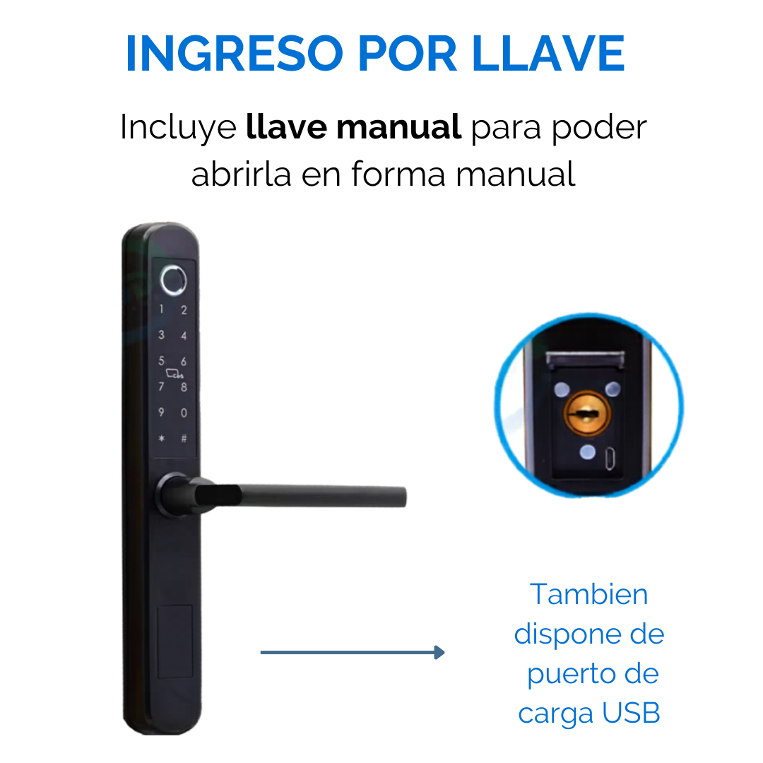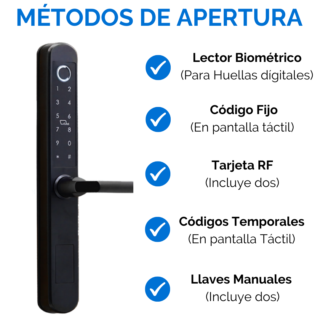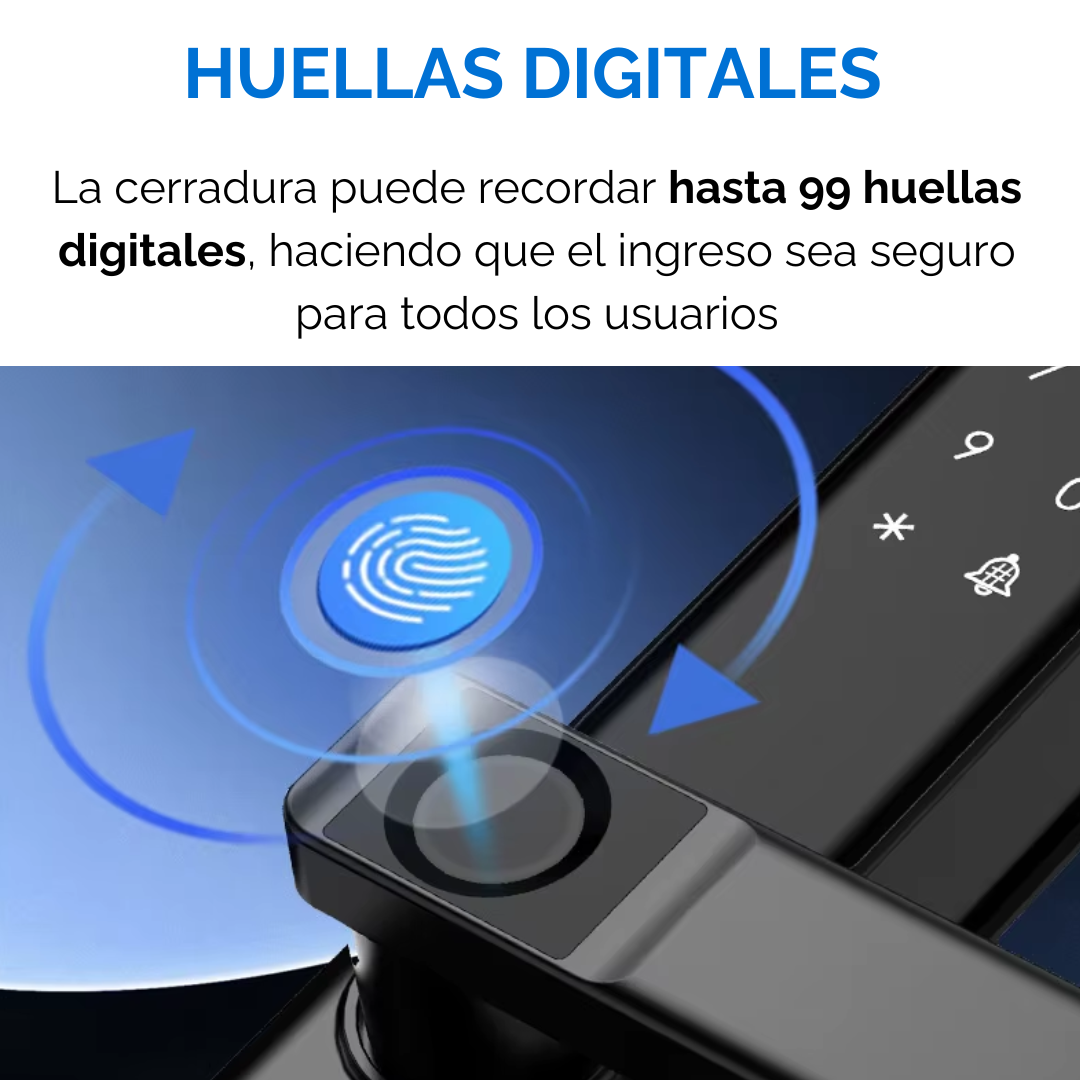 Ingreso por Huellas Digitales: La cerradura cuenta con un lector de huellas digitales integrado que reconoce hasta 130 personas, facilitando el acceso rápido y seguro. Solo debes apoyar el dedo sobre el pestillo y la puerta se desbloqueará automáticamente.