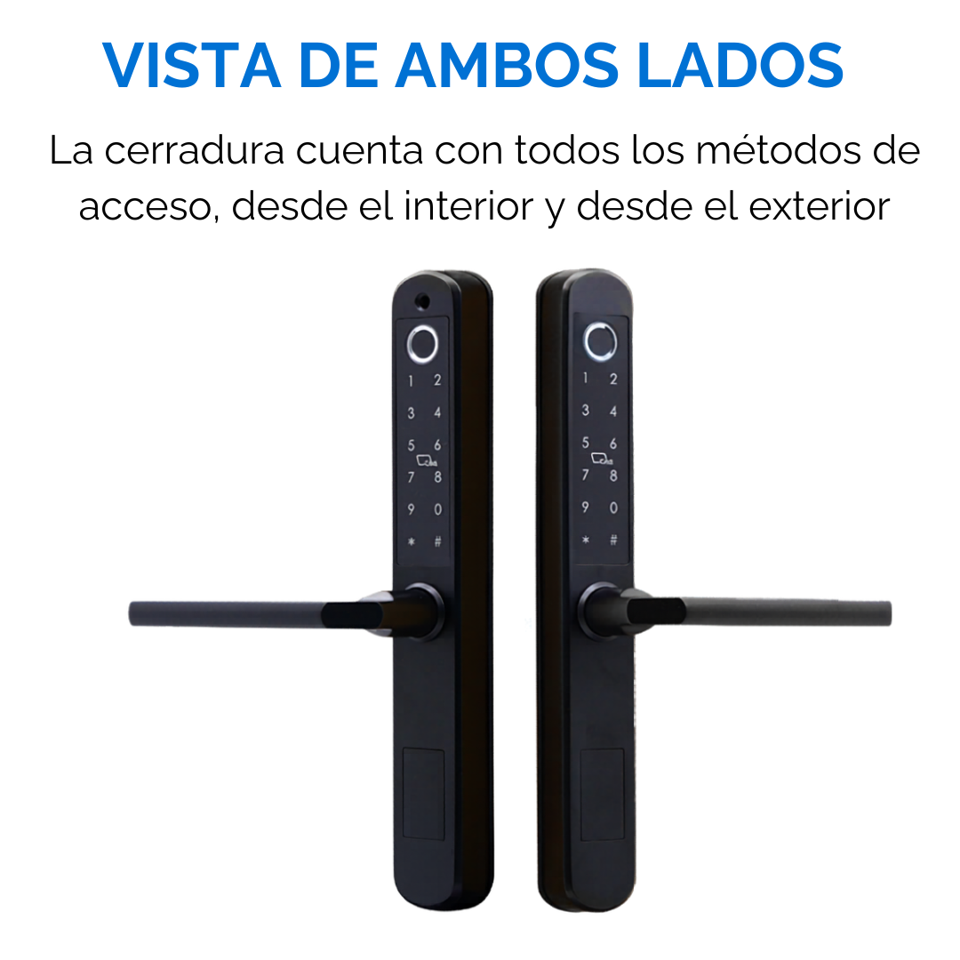 Presentamos nuestra Cerradura Inteligente WIFI para puertas exteriores, con doble sistema de acceso desde ambos lados, diseñada para olvidarte de usar llaves y brindarte máxima seguridad en tu hogar, oficina o empresa.