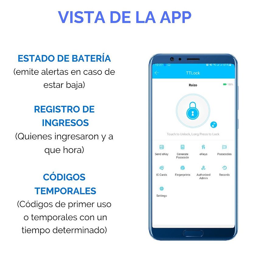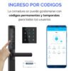 Sobre su pantalla táctil tiene un teclado virtual, en él podrás ingresar al hogar mediante códigos. Puede ser un código permanente (elegido por vos), o un código temporal (este se genera desde el celular, para permitir entrar a alguien y luego el código se auto-elimina).