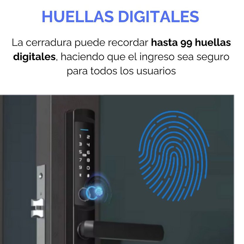 Nuestra cerradura tiene integrado un lector de huellas digitales el cual facilitara tu acceso. Simplemente, al llegar, apoyas el dedo en el pestillo y ella te reconocerá. Puede recordar hasta 130 personas.
