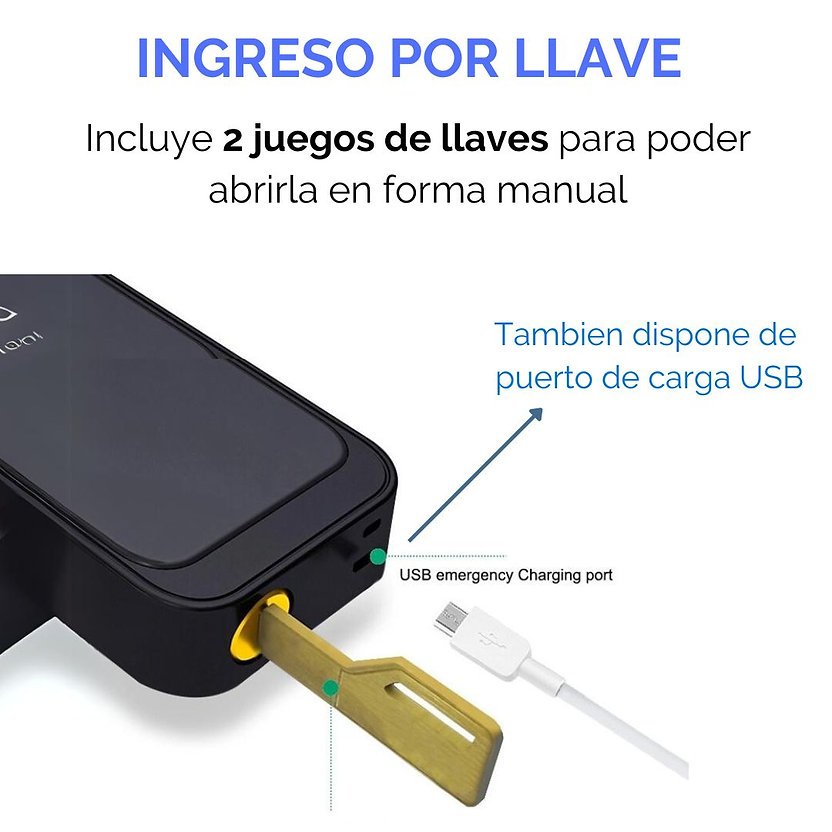La cerradura puede abrir mediante Tarjetas Electrónica TAG (2 incluidas en el equipo) y a su vez con llaves (2 incluidas en el equipo) manuales para el caso de quedarse sin pilas.