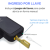 El equipo incluye 2 tarjetas TAG para apertura rápida, además de 2 llaves manuales como respaldo en caso de quedarse sin pilas.