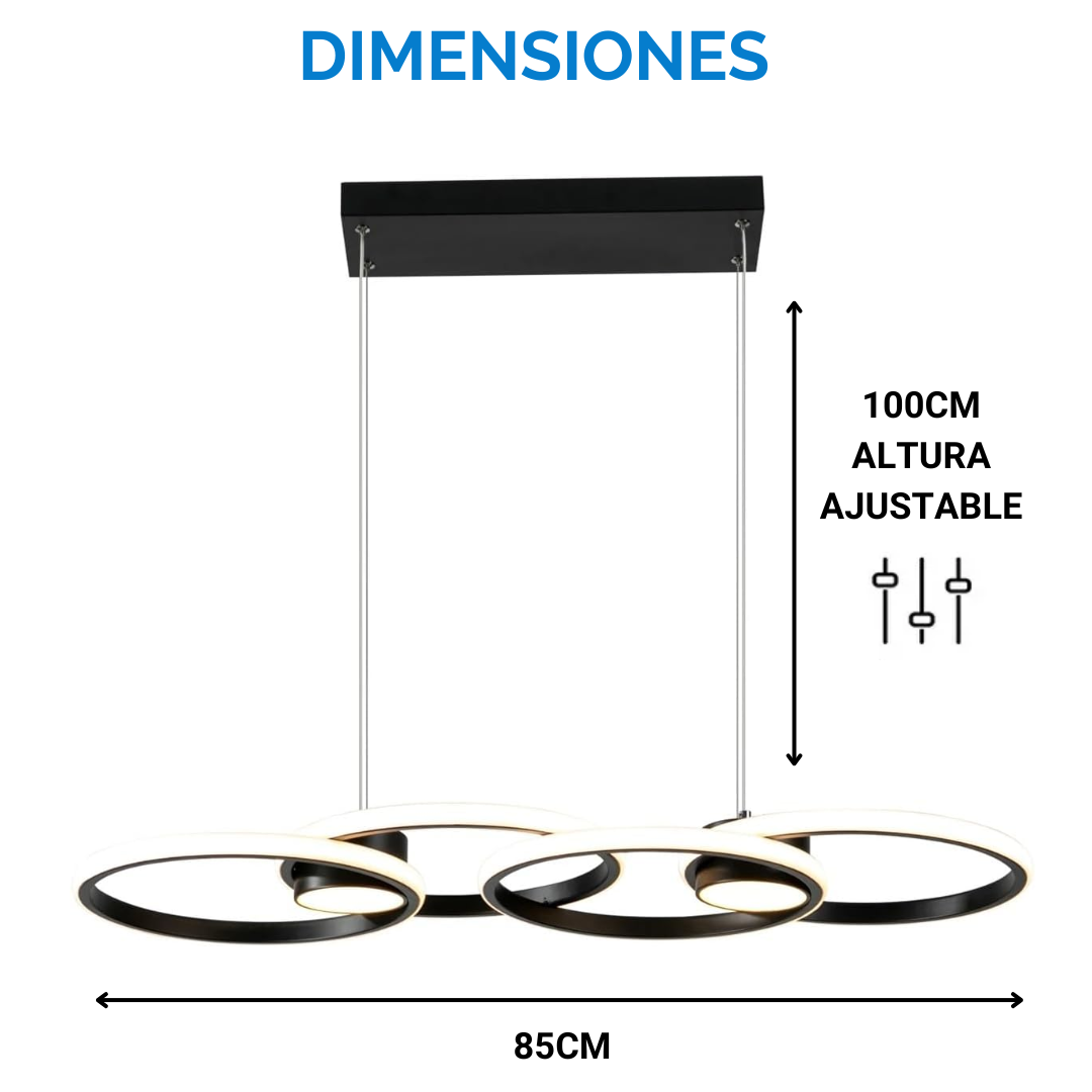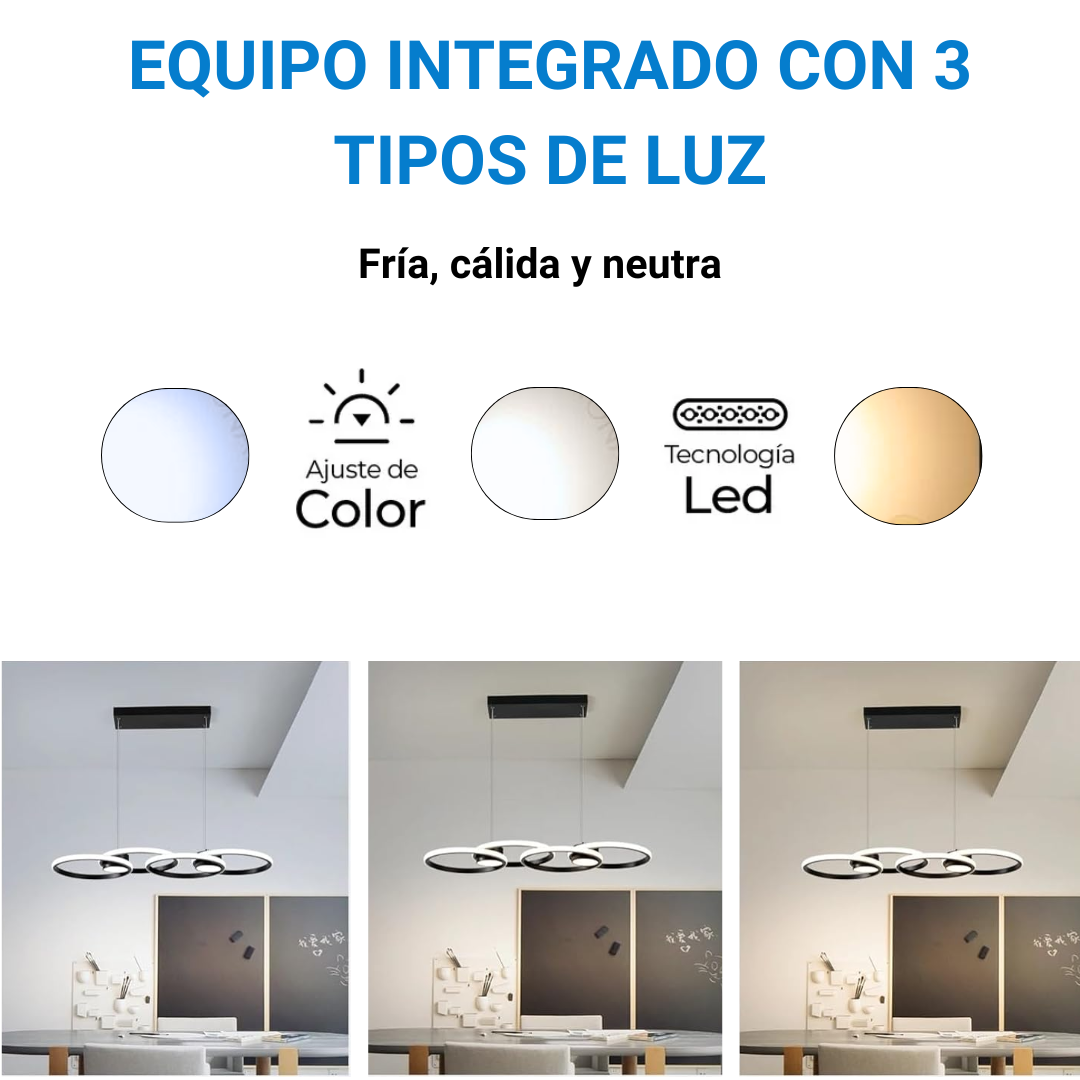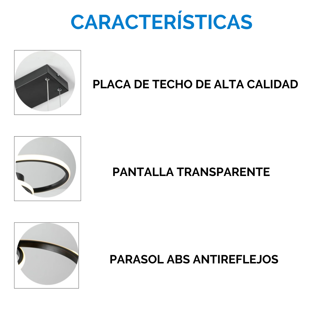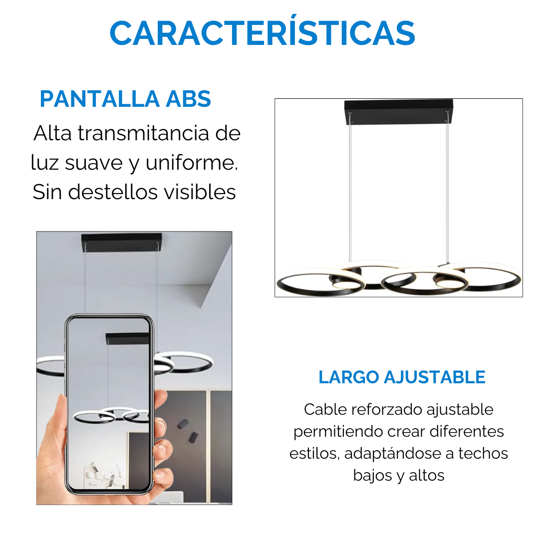 Te presentamos esta Luz LED de 4 Anillos y 2 focos de Altura Regulable para Techo, ideal para quienes buscan un diseño moderno, minimalista y funcional para cualquier ambiente del hogar.