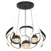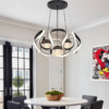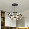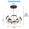 Este candelabro de diseño contemporáneo cuenta con tiras LED curvas, que aportan una luz suave y envolvente, generando una sensación de calidez y confort en cualquier habitación.