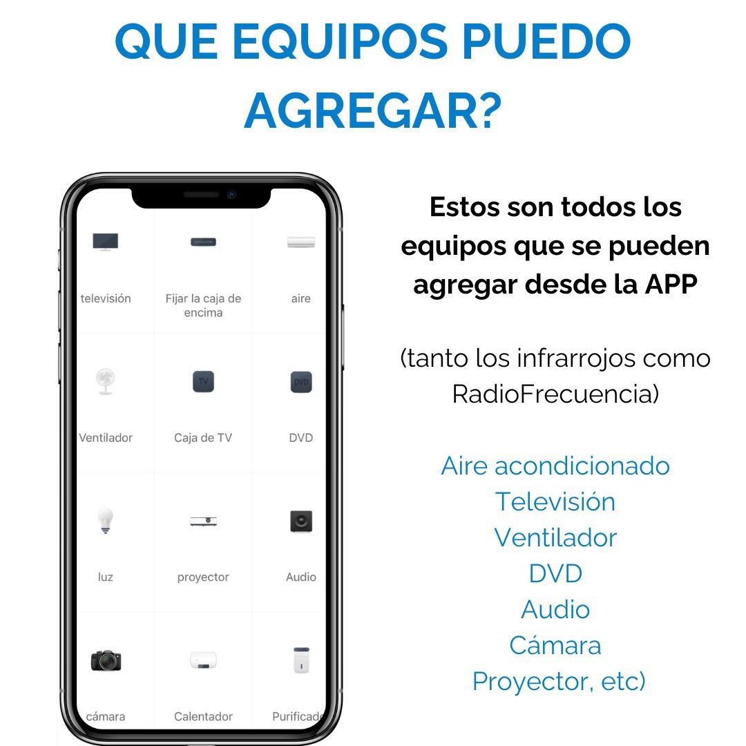 Con este dispositivo podrás controlar todos los equipos que utilicen control remoto en tu hogar, desde la aplicación simplemente con el celular.