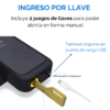 El equipo incluye 2 tarjetas electrónicas TAG y 2 llaves manuales, útiles en caso de que se agote la batería o surja algún inconveniente.