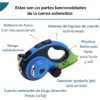 Tiene un sistema simple y fácil, cuenta con un botón de bloqueo y otro de liberación para un fácil control, lo que le permite a tu mascota más libertad para pasear.