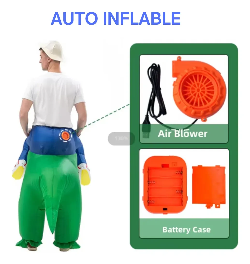 Este disfraz inflable para niños es ideal para convertir cualquier celebración en un momento inolvidable. Perfecto para cumpleaños, reuniones, fiestas temáticas y diferentes eventos, garantiza diversión, originalidad y muchas sonrisas.