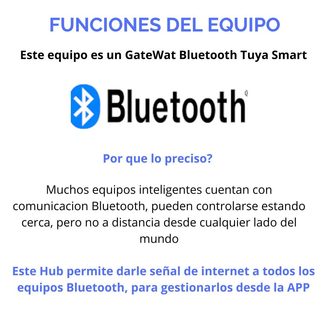 Presentamos el Hub Gateway Bluetooth de Tuya Smart, un equipo diseñado para conectar tus dispositivos inteligentes con comunicación Bluetooth a tu red de Internet, permitiéndote controlarlos desde cualquier lugar del mundo.