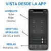 Las funciones principales son Subir, Bajar y Detener, además de la posibilidad de realizar aperturas y cierres por porcentajes, lo que te permite un control mucho más preciso de la entrada de luz natural.