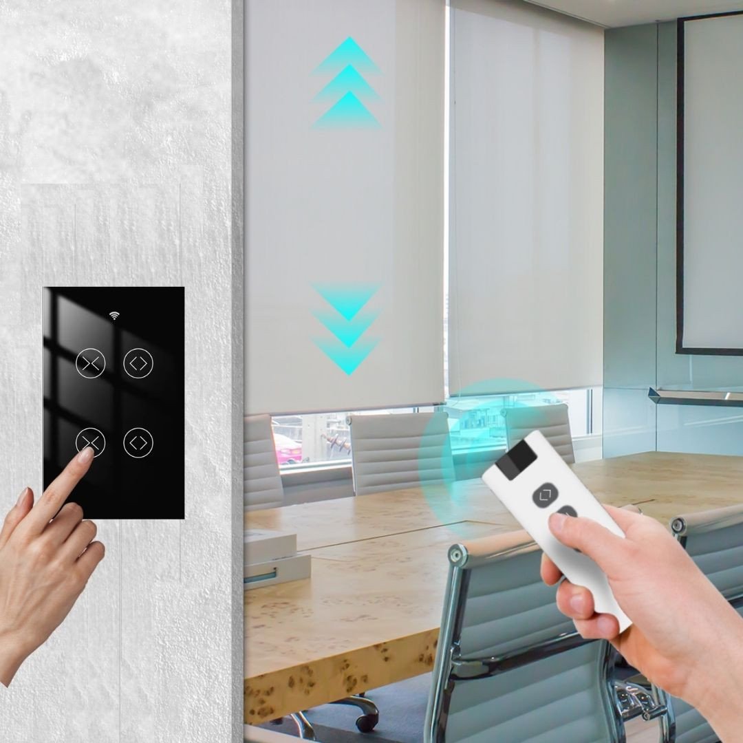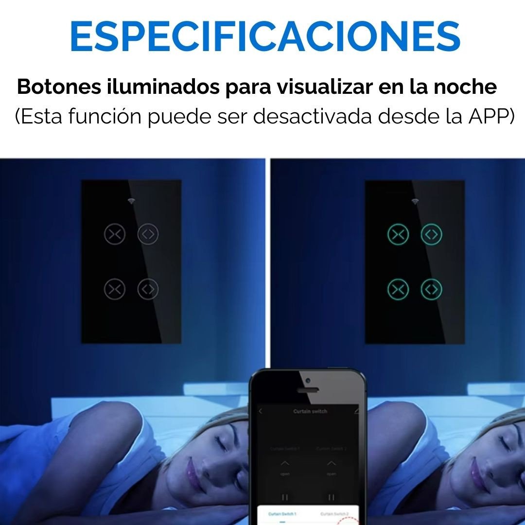 En este caso presentamos un Interruptor Táctil para Cortinas Dobles, ideal para quienes buscan controlar dos cortinas Roller o Persianas de manera práctica, moderna y eficiente.