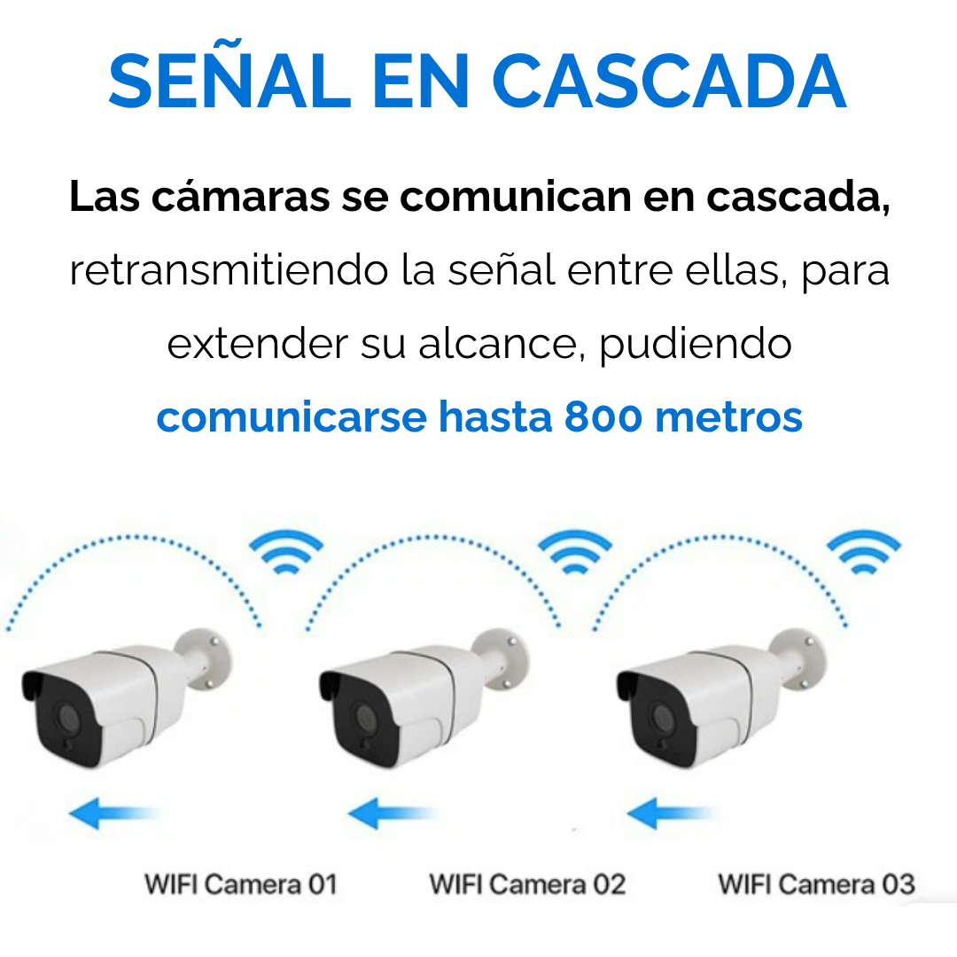 Conexión 100% inalámbrica: Las cámaras no requieren estar conectadas a una red Wi-Fi en su ubicación, solamente necesitan estar conectadas a una fuente de alimentación eléctrica.