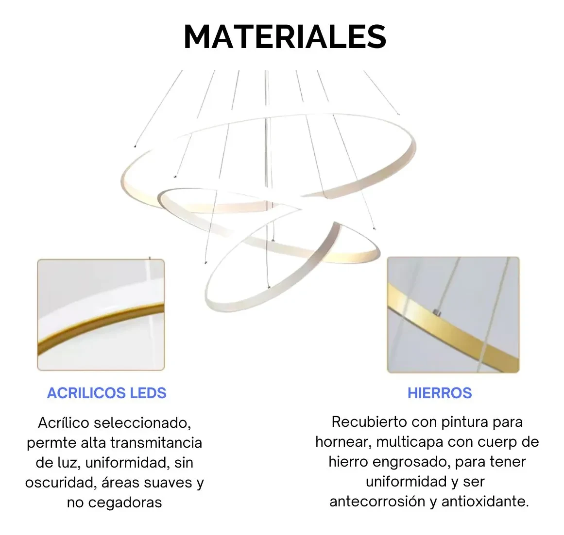 Es equipo es un Panel de iluminación para Techos, con formato de anillos, Color Blanco