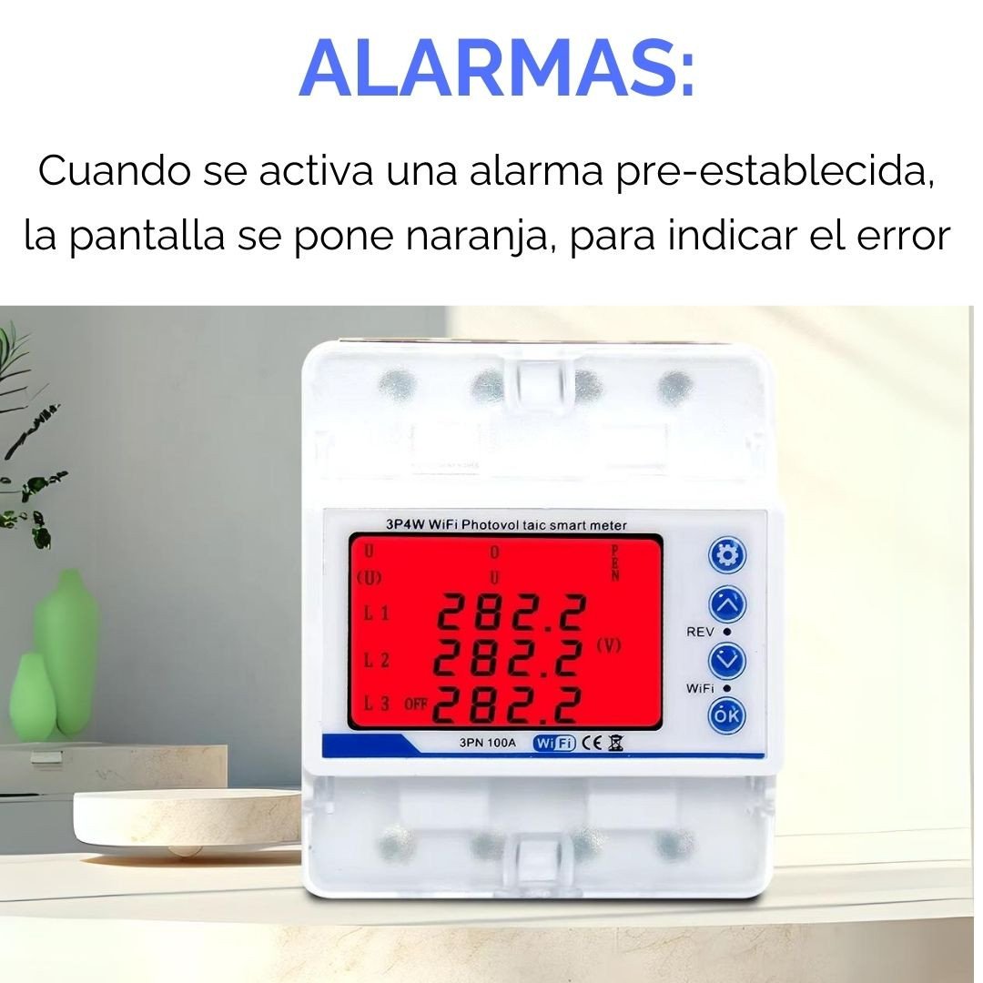 Este equipo es un Medidor de Energía de 80 A Wifi, con Relé Integrado, y puede funcionar con suministros de 400 V.