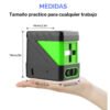Proyecta dos cuadrantes con cuatro líneas láser, que pueden ubicarse en los 360 grados, alcanzando una distancia de trabajo de hasta 20 metros.