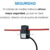 Su método de medición es indirecto (no hay contacto eléctrico directo) lo que ofrece mayor seguridad. El cable del brazo es de 70 centimetros.