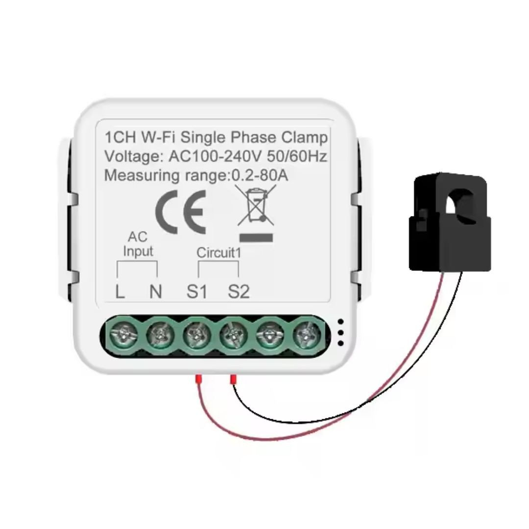 Este equipo es un Medidor de Energía monofásico de 80 A Wifi, con medida indirecta.