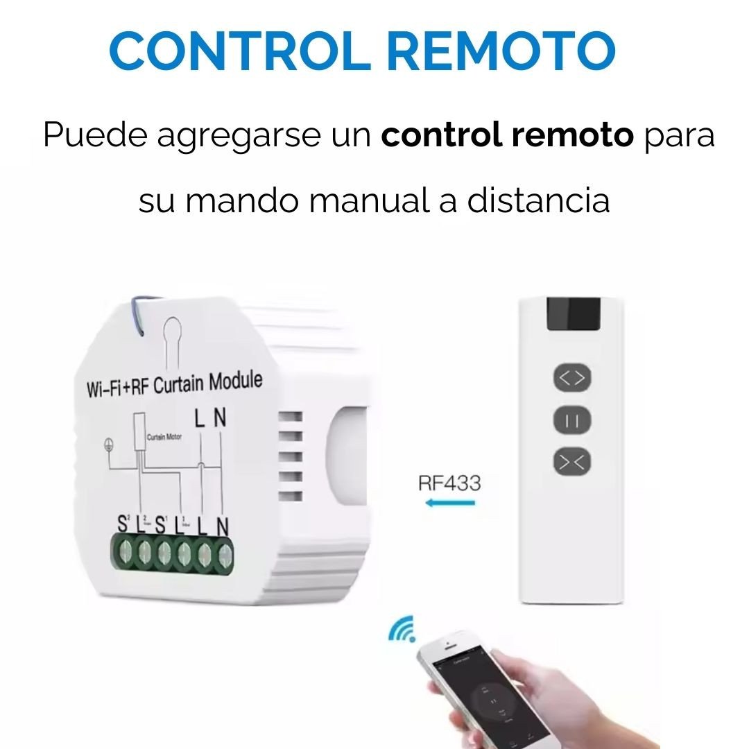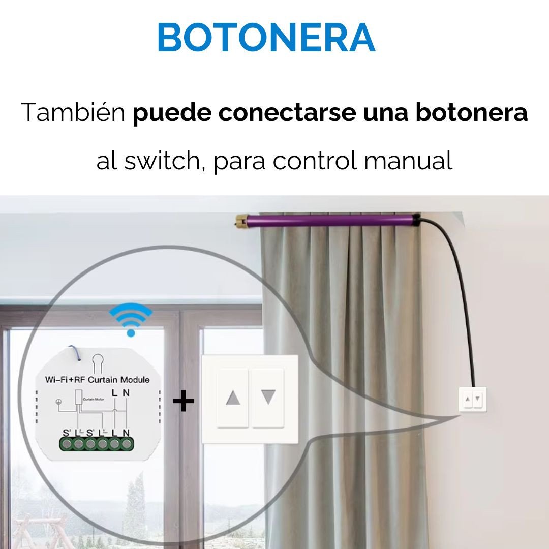 Es importante tener en cuenta que el motor de la cortina debe ser de mandos cableados, como los que se utilizan con una botonera tradicional. Si tienes dudas sobre la compatibilidad, puedes consultarnos y con gusto te asesoraremos.